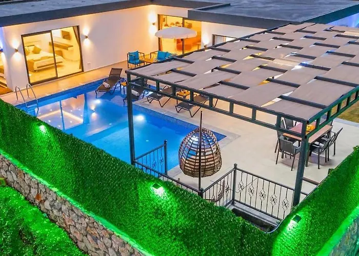 Kalkan Local Bazaar is 4.3 km away. The 2-bathroom villa is a 10-minute drive from Kalkan Public Beach.